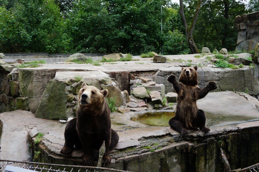 Перед входом в зоопарк на заборе сохранились барельефы. Вот не знаю изначального производства или они появились уже при СССР. Кафе. Говорят, что хорошее, но я ни разу там не был. По-моему оно там лишнее. Ну а вот и вход. Сам зоопарк существует с 1896 года. Один из старейших в России как я понимаю. Вход же когда-то выглядел иначе. Вот снимок 1913 года. А это уже конец 60-х. 1992 год. Вернёмся в наше время. На кассе мы выявили большую очередь. К моему удивлению. Не думал я, что зоопарк пользуется таким спросом. Проходим внутрь. Встречают нас еноты. Сразу же по правой стороне попалась заброшенная часть з