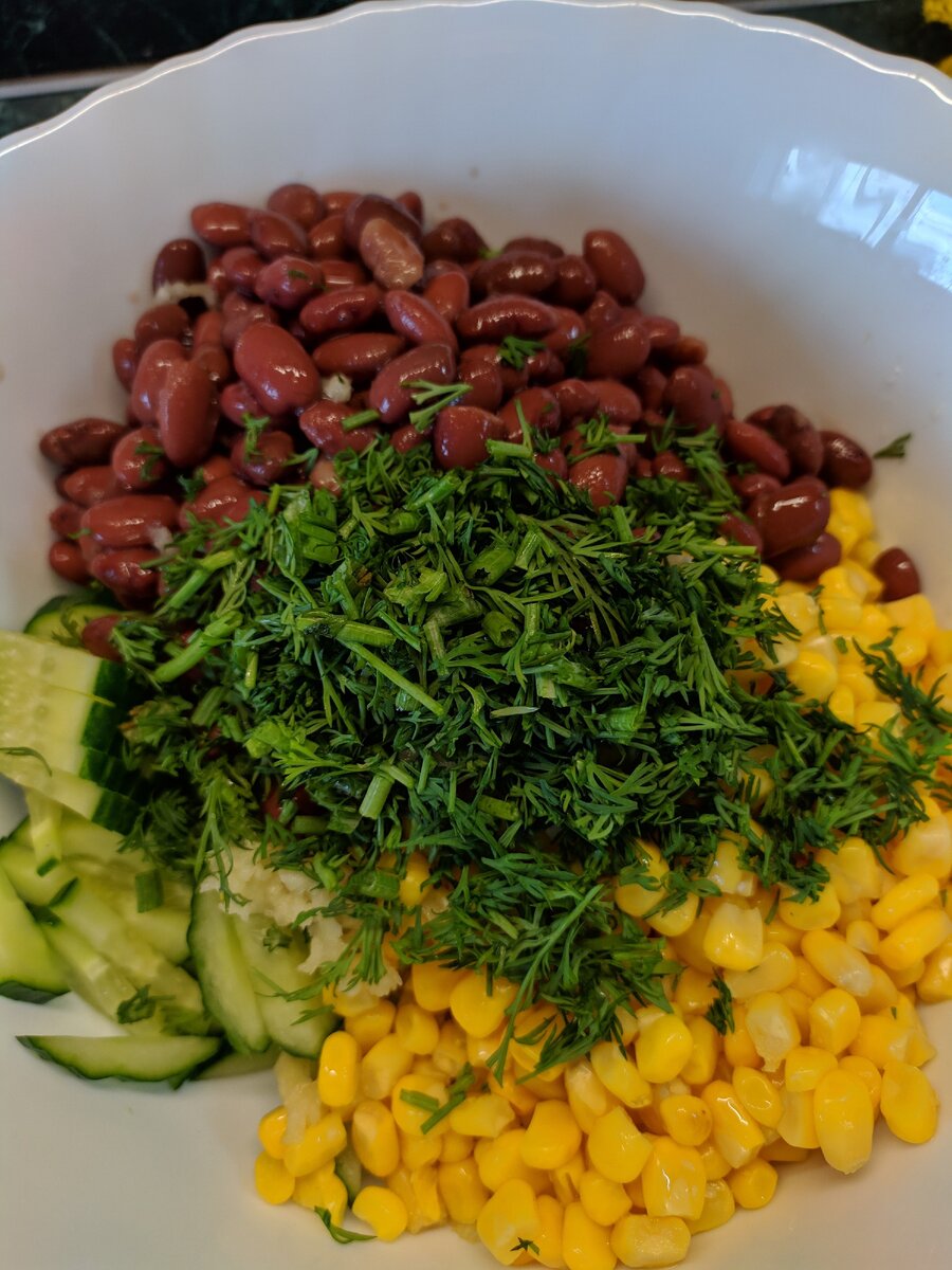 Ингредиенты: Высыпаем в салатник банку кукурузы и фасоли, предварительно слив с них жидкость. Режем огурец соломкой. Через чеснокодавку продавливаем чеснок. Всё перемешиваем, чуть чуть солим, заправляем майонезом. Сверху сыпим сухарики (лучше сухарики уже сыпать в тарелку для подачи, так как огурцы дают сок и сухари раскиснут). Вот такой быстрый и вкусный салатик получается! Стоит попробовать). Приятного аппетита! Подписываетесь на канал, ставим лайки, добавляйте комментарии если что то не так или надо что то добавить буду очень рад услышать ваше мнение. Стараюсь выкладывать полезные советы и вкусные рецепты только проверенные собой. Канал Рецепты и не только Смотрите также Сливочные креветки с чесноком и травами!!! Мой фирменный рецепт! Нежные,Сочные Куриные крылышки в духовке!И закуска и второе блюдо 2в1.