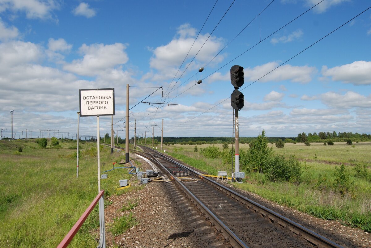 16 июня 2018 года состоялась поездка на остановочную пункт "Горочный Пост", который располагается на станции Агрыз со стороны сортировочной горки. Путь до туда был коротким - всего какие-то ничтожные 30 км и около 40 минут дороги на пригородном поезде Ижевск - Сайгатка: Вот красуется чётный маршрутный светофор возле стрелочного перевода. Прямо путь уходит в сторону станции Юски, на Ижевск, а налево уводит в один из грузовых парков Агрыза, а именно парк А: А вот в другую сторону путь уходит в парк Б, которые многие знают. Там находятся железнодорожный вокзал и локомотивное депо Агрыз: Сам остановочный пункт "Горочный пост". В основном, им пользуются работники железной дороги. Но при мне из пригородного поезда так же вышли 2 велосипедиста с большими туристическими рюкзаками и направились куда-то по полям на восток. Сама платформа на нём не очень то и низкая, примерно на уровне 1-2 ступени электропоезда: А вот и сама сортировочная горка: Роспуск вагонов - зрелище очень любопытное. Но весь