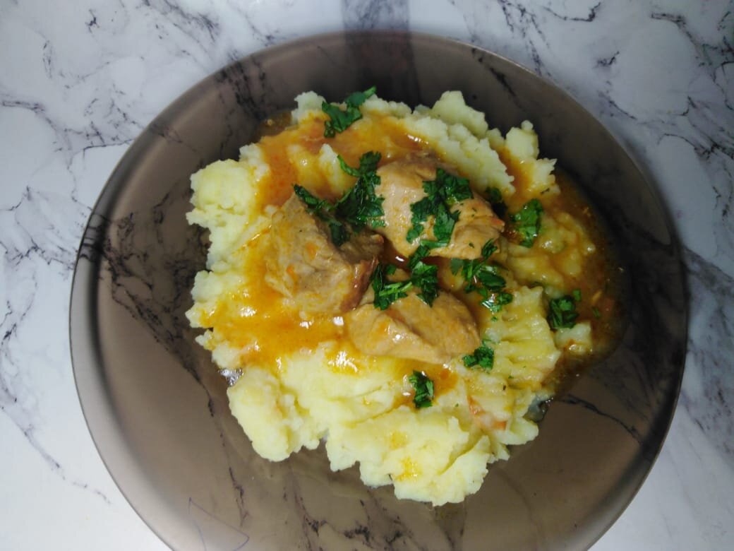 Помните тот самый вкус детсадовского картофельного пюре с гуляшом? Сегодня хочу рассказать вам, как приготовить это блюдо дома и порадовать себя и своих деток. Для приготовления гуляша с подливой нам понадобится мясо(можно брать любое свинина, говядина, курица)у меня свинина.Нарезаем его небольшими кусочкам и обжариваем(я обжариваю слегка,сразу в казане).Добавляем к мясу лук(резанный полукольцами)и морковь(натертую на терке).Тушем все под закрытой крышкой на слабом огне в собственном соку(если мясо сухое добавьте немного растительного масла).Мясо должно быть постоянно покрыто водой,когда жидкость выпарится долейте еще немного воды(примерно стакан)и тушите до готовности мяса.Следите за жидкостью, чтобы не пригорело, по необходимости воду подливайте. Минут за 20 до готовности посолите, добавьте лавровый лист и перец горошком.Готовность проверяйте вилкой и ножом, как стало мягким и легко разделяется значит готово. Делаем подливу.Разведите в теплой воде томатную пасту и муку в пропорции о