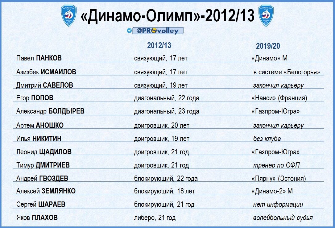 А вот Никитин и Щадилов до сих пор «рубятся». Первый, к слову, в том же 2013-м году вместе с Панковым, Полетаевым, Куркаевым, Феоктистовым, Демаковым и другими стал чемпионом мира среди молодежных сборных U-21. Однако пробиться в Суперлигу Илье не удалось – вояж в клубы Высшей лиги «А» («Динамо-ЛО», МГТУ, «Кристалл», «Университет») сменился зарубежной карьерой. Сначала Никитин попробовал силы в Индонезии, после чего перешел в кипрский «Апоэл». А вот Леонид Щадилов сумел добраться до элитного дивизиона. Родное «Динамо» сменилось «Газпром-Югрой» и «Ярославичем», после чего доигровщик снова вернулся в Сургут.