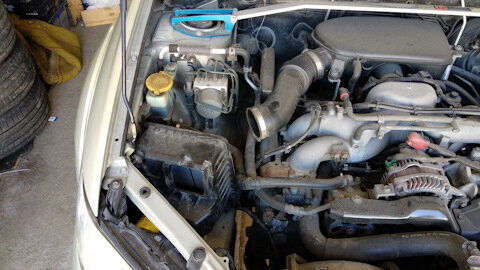 Приветствую всех на страничке SUBAлёта. После установки японской фары с европейской шторкой у меня была проблема — правая фара всегда светила дальним. И шторка не переключалась. Поэтому проблему нужно было решать оперативно — не слепить же всех. Приехал в гараж. Далее все просто. Скидываем воздухозаборник и фильтр целиком. Тут меня ждал жесткий сюрприз в виде еще одного последствия ДТП! Хорошо, что это до фильтра, а не после него. В общем — у кого есть, то предлагайте, ищу корпус. Снимаем крышку на фаре, снимаем лампу, отворачиваем отверткой с магнитным наконечником 2 самореза и снимаем отражатель. Далее суем свой нос почти в фару и видим проблему, из-за которой не работает шторка.