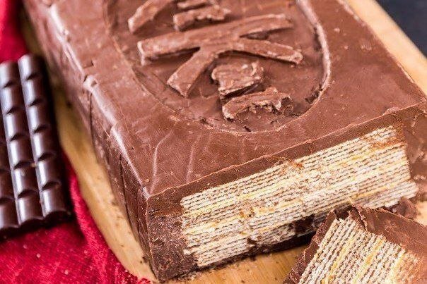 Ингредиенты: Молочный шоколад — 4 кг Вафли с начинкой — 1,5 кг Карамельные конфеты — 500 г Сливки 30% — 30 мл Приготовление: 1. Форму оберните в один слой фольгой или пищевой пленкой. Измельчите шоколад и растопите 1 кг на паровой бане. 2. Влейте шоколад в форму и уберите в холодильник немного застыть. Измельчите конфеты и поместите в большой сотейник. Добавьте немного сливок и растопите на слабом огне. 3. Выложите вафли поверх шоколадного слоя. Распределите карамель поверх вафель. Повторите процедуру 3–4 раза (в зависимости от высоты бортиков формы). 4. Растопите оставшийся шоколад на паровой бане. Распределите поверх вафель и разровняйте (при необходимости). 5. Уберите в холодильник до застывания. Приятного аппетита!