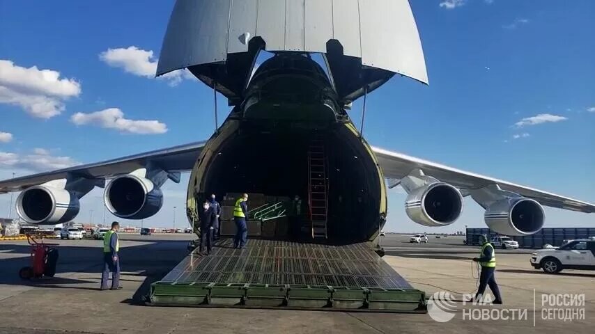 Накануне в Нью-Йорк прибыл самолет Ан-124 ("Руслан") с грузом из России. Посол в США Анатолий Антонов сообщил, что на борту находились оборудование, дезинфицирующие средства, очки, маски и респираторы. Дипломат выразил уверенность, что и Вашингтон при необходимости поможет Москве.