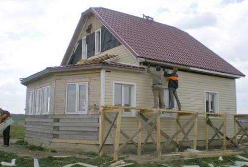 При этом теплоизоляцию можно и не делать, если в доме и так тепло. Потом уже производится монтаж внешней отделки.