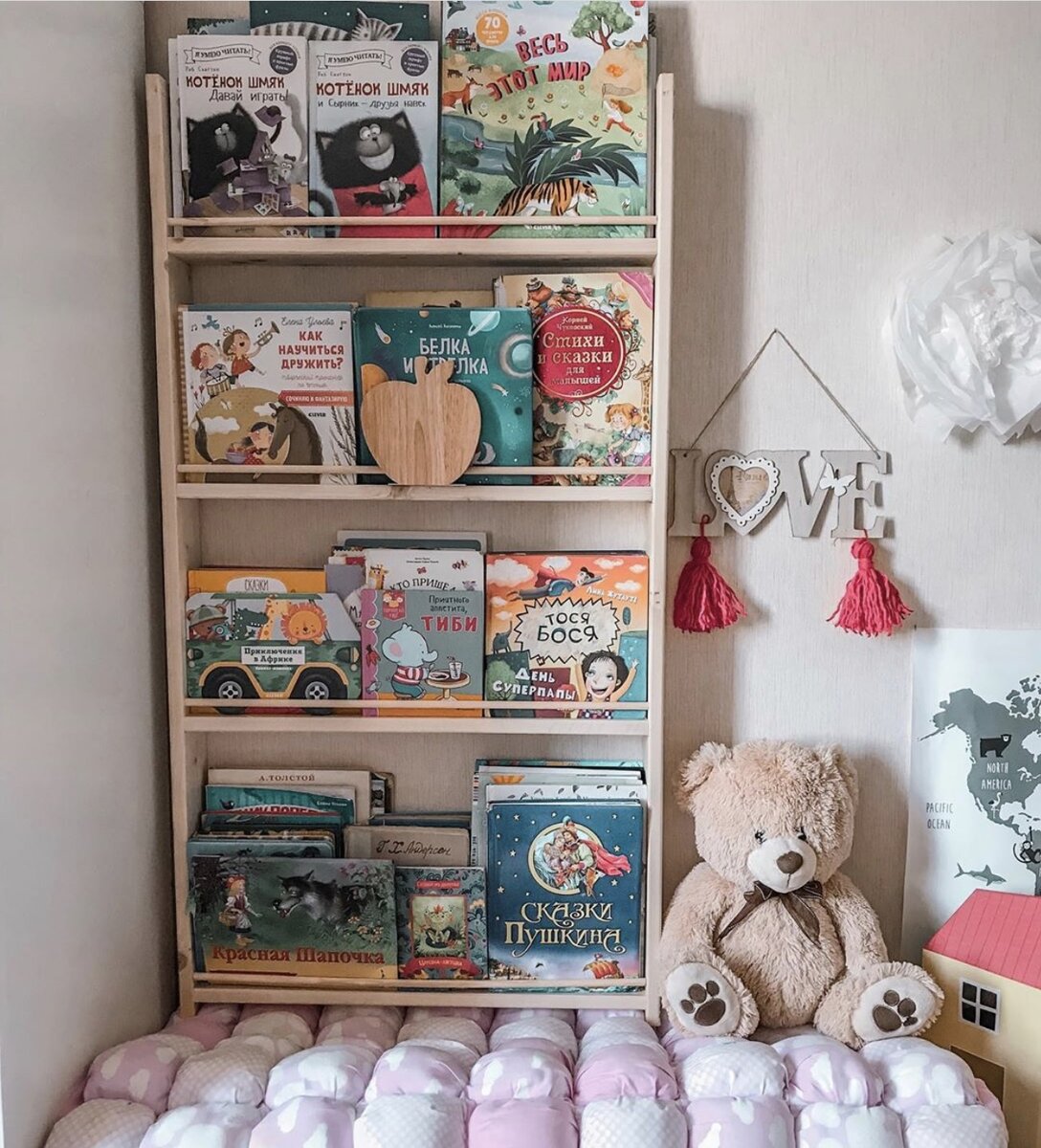 Мои дочки обожают книги. У нас целая детская библиотека. Они занимали много места, пока мы не сделали для них стеллаж. Вот что у нас получилось 👇🏻 В конце вы узнаете, что и каких размеров нам пригодилось для изготовления такого стеллажа 😉 Ещё одним немаловажным фактором для меня было сохранить уют в детской, и не загружать шкафами, без того маленькое пространство! Чтобы при перестановке мебели полка все равно смотрелась уместно и органично. Например, 👇🏻как здесь. Получилась дополнительная полка для канцелярии в рабочей зоне. Или чтобы это было полноценным местом для чтения в детской 👇🏻 как здесь Мне нравится, что книги расположены лицевой стороной. Наглядно и так больше помещается на одну полку, а ещё можно постоянно менять цветовую гамму, переставляя книги нужной обложкой на передний план 😉 Как видите, мне нравится периодически что-то менять и преображать пространство. А теперь наши размеры, из чего и как мы сделали наш прекрасный стеллаж ❤️ Доска сосна 96/20 длиной 3 м