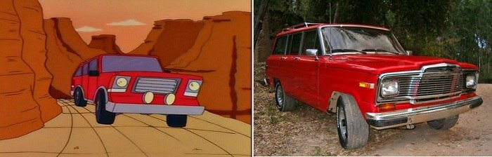 Большой красный внедорожник, который был куплен Гомером похож на Jeep Wagoneer. Мардж была обескуражена огромным красавцем, но чтобы спасти своего мужа от носорога, разбила машину до неузнаваимости. Купленная Гомером на распродаже машина преступника "Змея" очень схожа с Pontiac Firebird 1967 года. Кемпер приобретенный Гомером для того, чтобы показать Фландерсу настоящий семейный дом на колесах. Когда Гомер заменил на время главу мафии, то сразу же прикупил себе Dodje Ram. По Британии Симпсоны гоняют на "Mini Cooper", выпускавшимся "Austin Motor Company Ltd" с истинно британской консервативностью без внешних изменений аж с 1959 года. Молодой Гомер радостно моет свой "Plymouth Road Runner" 1970 года. Как, оказывается, легко втюхать Гомеру "Cadillac" 1964 года выпуска без тормозов! Достаточно просто включить сирену. На чем можно спастись от зомби? Понятно дело, что лучший транспорт для этого случая – "Cadillac" Hearse (катафалк) 1989 года. На подозрительной распродаже подержанных авто Гом