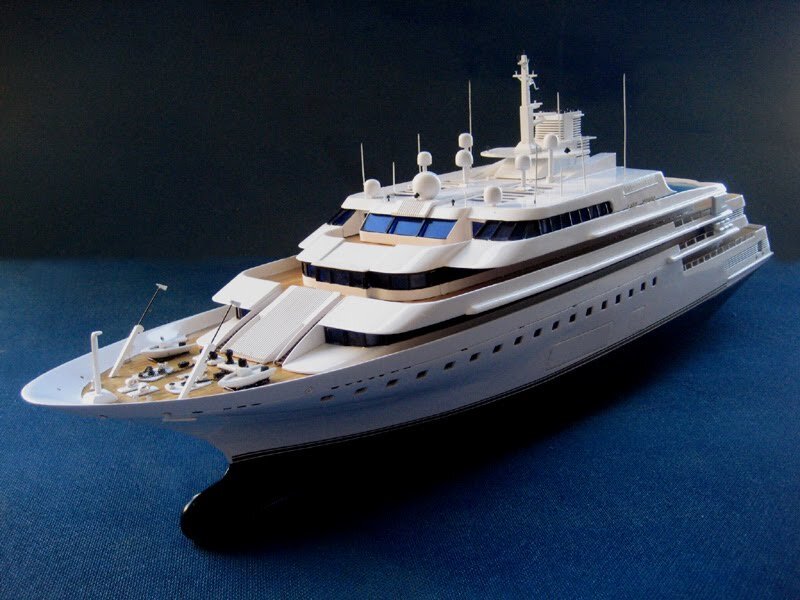Особенности: Фантастическая антишпионская и антипиратская вооруженность. Собственно постройку яхты эксперты оценивают примерно в полмиллиарда долларов, но её оснащение делает её одной из самых дорогих на свете. К тому же она совсем недавно отдала титул самой большой. Что же есть на этой яхте: 9 палуб, порядка 20 тендеров, мини-субмарина на 12 мест, вертолёты, все стёкла пуленепробиваемые, основные узлы яхты и мастер-каюта бронированы. Установлена система оповещения о ракетном нападении и сложная оптико-электронная защита от папарацци. Покинуть яхту можно пятью разными способами. Среди помещений яхты – винный погреб, кинозал, бассейн, библиотека, зимний сад и пр. Гости размещаются в 11 каютах. Скорость невелика: 25 узлов. Экипаж – около 70 человек. В отделке – мрамор, ценное дерево, шкуры леопардов и рептилий. Взять эту яхту в чартер можно за $ 2 000 000 в неделю.