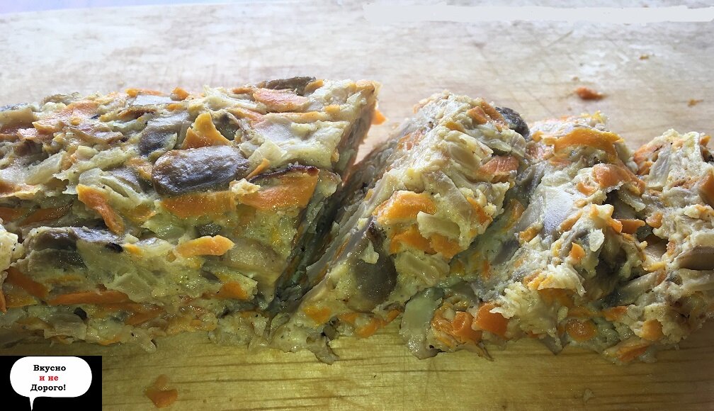 Всем привет дорогие друзья! Колбаса купленная в магазине, это конечно самый простой способ перекусить дома, но не всегда колбаса купленная в магазине оказывается вкусной, а если она будет вкусной, то скорее всего, цена у нее будет сильно завышенной. Сегодня я бы хотел поделится с вами рецептом, очень вкусной альтернативой колбасе, даже это не совсем колбаса (потому как здесь не будет мяса), это больше закуска похожая на нее, которая готовится крайне просто и быстро, на выходе вы можете так же спокойно ее нарезать и положить на хлеб, лично я так ел и мне очень понравилось! Ингредиенты которые вам понадобятся: Грибы шампиньоны - 200 грамм Капуста белокочанная - 100 грамм Морковь - 100 грамм Яйцо куриное - 3 шт Мука - 2 ст.л Чеснок - 2 зубчика Соль - по вкусу Паприка, черный перец - по 0.5 ч.л Растительное масло. Теперь давайте приступать к приготовлению, для начала вам нужно грибы нарезать на тонкие "слайсы". Теперь возьмите обычную белокочанную капусту и нарежьте ее на тонкую соломку,
