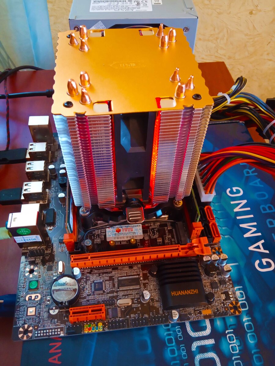 Они насмотрелись роликов в интеренет про божественную производительность за небольшие деньги и переубедить с наскоку не получилось. Хозяин барин. Так как разгонять они ничего не будут, то предложил им одну из самых дешевых плат Huananzhi x79 2011, процессор Xeon 2630V2 2,6Ghz 6 ядер, 12 потоков, два модуля памяти Klissre по 8Gb ECC и сразу за компанию кулер о шести трубках в того же продавца.