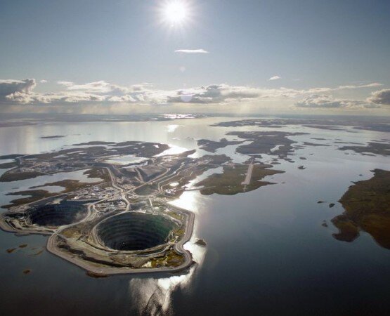 Алмазных карьеров по миру не мало и в общем-то, один от другого мало чем отличаются, но всегда есть исключение. Одно из них - алмазный карьер "Дьявик" в Канаде. Этот гигантский кратер поражает своим видом. Окружённый водой со всех сторон, с высоты птичьего полёта он выглядит как слив в ванной, только вот вода туда не сливается. Дьявик находится на небольшом островке Северо-Западных территорий, на озере Гра. По сути, это не остров, а много маленьких клочков земли, на которых пробурили кратеры. Алмазные рудники Дьявика были созданы 15 лет назад и за всё время с рудников вывезли более 20 тонн алмазов. По всей территории озера разбросаны ещё несколько таких дыр, но именно Дьявик привлекает внимание своей невероятной близостью к воде. Нужно сказать, что находятся рудники в не самом благоприятном месте как географически (всего 220 км от Северного полярного круга), так и климатически. Поэтому, кроме рабочих там никто и не живёт. Но не думайте, что им приходится жить в наспех собранных домиках
