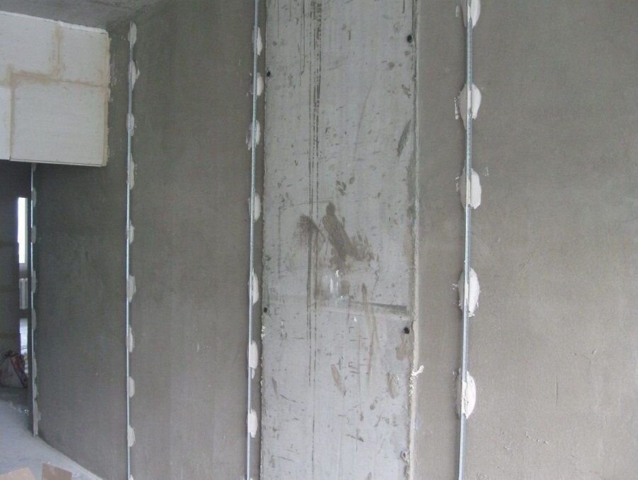 Выравнивание стен штукатуркой существенно облегчает впоследствии шпатлевку, покраску или поклейку обоев. Поскольку ровные стенаы с выдержанной геометрией не потребуется выравнивать при помощи шпатлевки (расход которой при этом будет минимальным), или подрезать обои при поклейке. Вовремя ремонта полезные советы помогут сэкономить на материалах и получить идеально ровную поверхность. Маячная штукатурка На не оштукатуренные стены накладываются маяки, которые выставляются по уровню в одной плоскости перпендикулярно полу и окружающим стенам. Для получения идеального результата лучше всего использовать лазерный уровень, поскольку он даст наиболее точную разметку. При помощи правильно выставленных маяков можно свести к минимуму неровности стен, возникшие во время строительства. Фиксация маяков Маяки фиксируются при помощи быстросохнущего раствора или при помощи дюбелей к стенам. Лучше использовать раствор поскольку дюбеля придется извлекать из стен после оштукатуривания, как и сами маяки