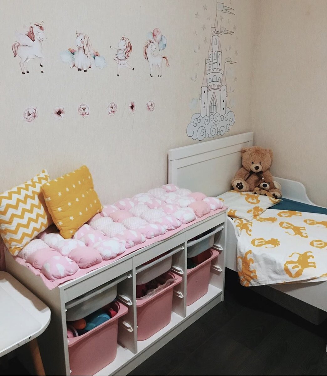 Хранение в детской! С этим у меня всегда самое интересное ☺️ Я люблю все перебирать, переставлять с места на место и организовывать все новые места под разные #нужныененужности 😂 Рассмотрим 2 возрастные группы: Малыши очень любопытные, замечали, им нравится открывать все дверцы, коробочки, заглядывать во все укромные уголки. Поэтому, лучше выбирать для детской стеллажи с выдвижными ящиками, маленькие комоды. Детки постарше включают своё воображение и им нравится раскладывать все вещи по местам, туда куда они хотят 😄 Для этого стоит выбрать открытые полки на которые вы расставите игрушки, книги (в небольшом количестве). Таким образом, вы поможете своему ребёнку в развитие новых навыков 👌🏻 Грамотно выстроенная среда помогает правильно и гармонично развиваться. Это имеет прямое отношение к Методике Монтессори о которой я напишу отдельную статью чуть позже, поэтому: ✔️Подписывайся ✔️Ставь лайк Декор для детской своими руками Мебель Икеа в детской. Обзор комнаты для двух