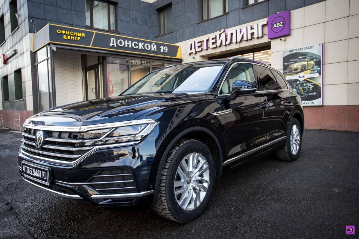 Привет всем, недавно в нашем детейлинг-центре на Донском побывал Touareg в новом кузове, кроссовер приехал сразу от дилера своим ходом. Что из этого получилось и почему кроссовер не перевозили на эвакуаторе, можете узнать в видео Андрея Пойманова. А сейчас давайте посмотрим, что из себя представляет новый Touareg и как мы его защитили. Какой он новый Touareg В Volkswagen заверяют, что новый Touareg обеспечивает высочайший уровень комфорта. Мы не верим на слово никому, поэтому давайте сами посмотрим, что из себя представляет Touareg третьего поколения. Любителей хрома обрадует его обилие, только посмотрите на эту огромную решетку радиатора. Но, если ее покрасить в черный цвет, автомобиль будет выглядеть брутальнее и злее. Как вы считаете? Есть предположение, что немцы сделали новую модель такой блестящей в угоду китайцам, где, между прочим, впервые и представили новый Touareg. Новый Touareg стал на 77 мм длиннее (4878 мм) и на 44 мм шире (1984 мм) предшественника. Объем багажного отде