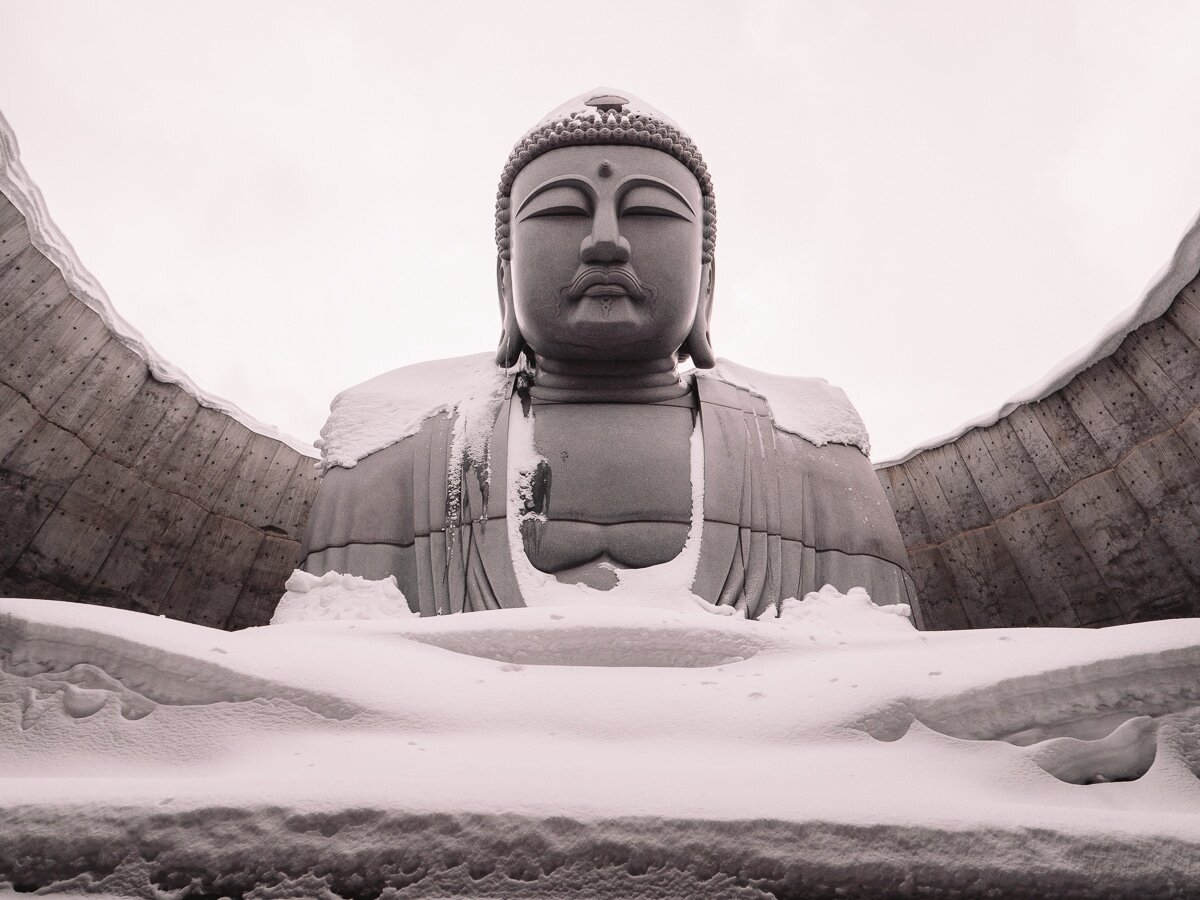 Я не знаю почему, меня всегда тянуло на восток нашего земного шара, в Азию, культуру, религии и 6 месяцев, проведенных на этой стороне планеты 5 лет назад позволило мне быть более очарованным этой страной. Я видел какого-то Будду, которого звали "Дайбуцу" во время моих предыдущих поездок в Японию, но этот, высотой чуть более 13 метров, просто вау! Размещенный на кладбище и сделанный в 80-х годах архитектором Тадао Андо, он единственный в своем роде, и я думаю, что надолго запомню, как хлопья кружатся в ветре в глубокой тишине! Короткий момент, но великий момент счастья.