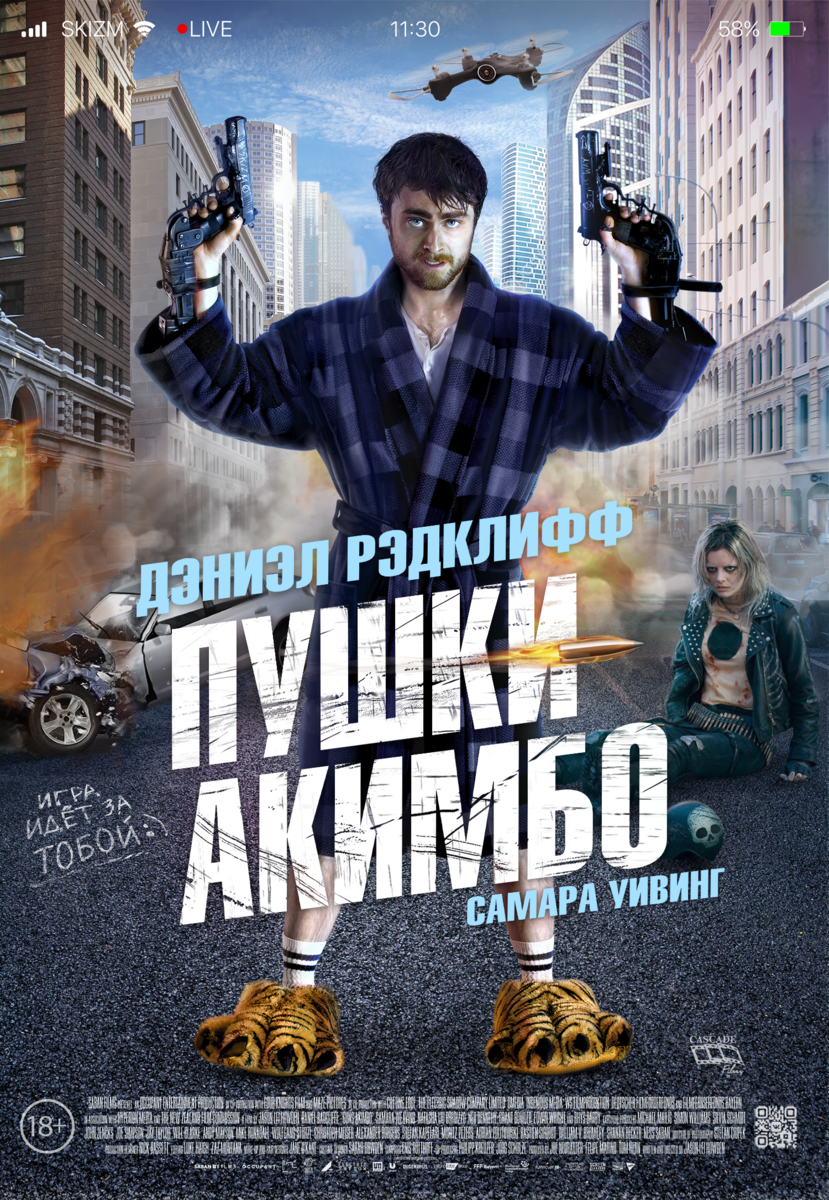 Пушки Акимбо Guns Akimbo 2019 боевик, комедия Великобритания, Германия, Новая Зеландия Майлз небезосновательно считает себя неудачником: девушка бросила, а сам он работает в заштатной конторе разработчиком мобильных игр. Единственная отдушина в жизни парня - интернет-троллинг. Каждый вечер он провоцирует кого-нибудь в сети и, хорошенько поругавшись, спокойно засыпает. Однажды Майлз хамит очередному незнакомцу на сайте, где транслируются жестокие игры на выживание, и вскоре, вычислив местоположение нашего диванного героя по IP, в его дом вламывается группа отморозков. Теперь к рукам Майлза прибиты два пистолета, а сам он выставлен на поединок с психопаткой по имени Никс - безжалостной чемпионкой этих подпольных игрищ. Рейтинг IMDb: 6.3 Рейтинг кинокритиков: 54% Российские кинокритики: 100% Рейтинг ожидания: 97% Положительные рецензии: 77% Кинопоиск: 6.4