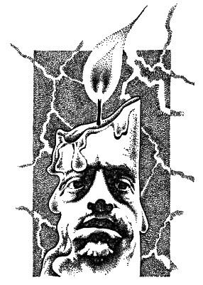 Я вздрогнул, когда раздался звонок в дверь, и вскочил на ноги. Тут же от меня отвалился кусочек кожи. Я спрятал его под диванную подушку и пошел открывать. Возле двери угрожающе скрипнуло ухо. Я расправился с ним, засунул в карман и отпер дверь.