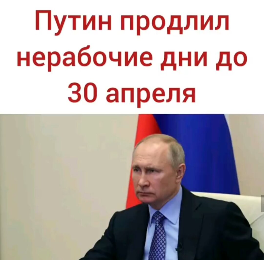 Владимир Путин продлил нерабочие дни в России до 30 апреля. Режим самоизоляции продолжается из-за неутихающей пандемии коронавируса. С новым обращением президент выступил 2 апреля. Как и прежде продолжат работать государственные органы, магазины продовольственных товаров и службы жизнеобеспечения.