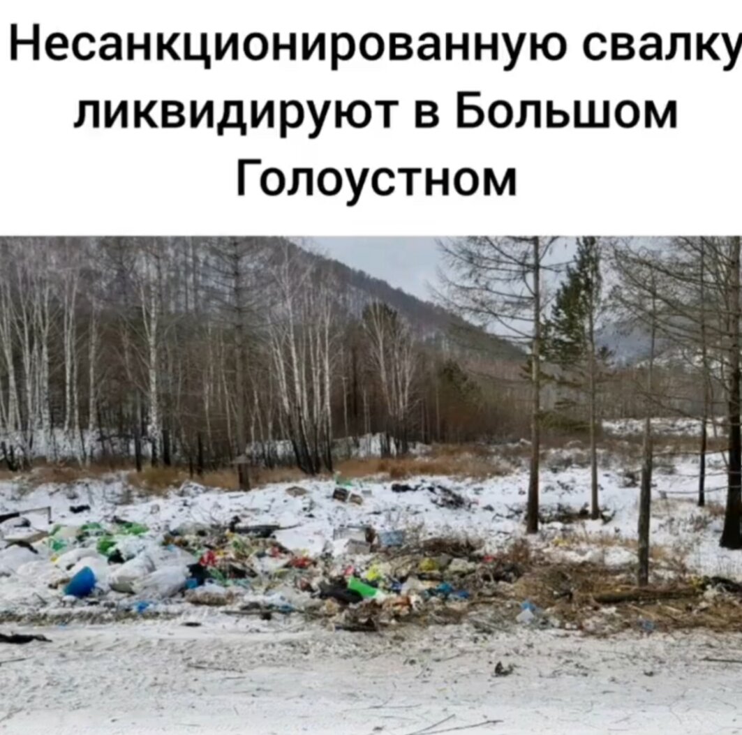 Несанкционированную свалку отходов нашли вблизи посёлка Большое-Голоустное. Отходы находятся частично на неразграниченных землях, частично на полосе отвода дороги.По данному факту природоохранная прокуратура проводит проверку. Определяется лицо, ответственное за ликвидацию свалки. Сотрудники природоохранной прокуратуры озабочены тем, что на территории Большого-Голоустного нет мест временного размещения отходов, что влечёт постоянное увеличение обнаруженной свалки новых мусором. Для комплексного решения проблемы необходимо обеспечить территорию населённого пункта надлежащей контейнерной площадкой, а также местами временного накопления отходов.