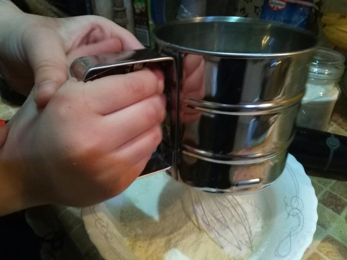 Недавно с внучкой решили напечь пряников. Она помогала вовсю, вон её ручки муку мне просеивают. Может, кому-то пригодится рецептик. Взбить 1 яйцо с 4 столовыми ложками сахара. По рецепту надо было 200 г хорошей сметаны. У меня было её чуть меньше, и я дополнила до нужного объёма кефиром. Добавить туда немного соли и чайную ложку (без верха) соды. Смешать сметану с яичной смесью. Очень хорошо всё смешать и добавить просеянную муку, примерно 400 г и маленький пакетик ванилина. Мука разная бывает, и яйца разные по размеру. Поэтому ориентируйтесь на вот такое тесто. Оно должно быть мягким, некрутым. Столовую ложку растительного масла можно вмешать в уже готовое тесто. Просто хорошо вымесите. В муку можно добавить различные пряности, например смесь муската, имбиря и корицы- всего по чуть-чуть. Заверните тесто в плёнку или пакет и положите на полку холодильника на полчасика. Теперь раскатайте и нарежьте, как вам понравится. У нас кружочки примерно см 8 в диаметре, а тесто толщиной чуть мень