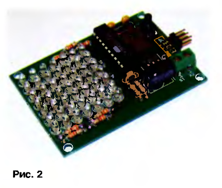 Эта статья посвящена новой разработке “Мастер КИТ” — синтезатору световых эффектов. Устройство предназначено для отображения анимированных рисунков на светодиодном поле размером 7х7. Анимированные рисунки хранятся в памяти микроконтроллера и переключаются простым нажатием клавиши управления. Внешний вид и число эффектов определяется прошивкой микроконтроллера и в базовой версии составляет 12. Небольшие размеры, надежность, простота в изготовлении и настройке, низкая стоимость делают это устройство крайне привлекательным. Собрать его можно из набора «Мастер КИТ» ММ5101. На сегодняшний день применение микроконтроллеров (МК) широко распространено не только в сложных устройствах и системах, но в игрушках. Благодаря низкой себестоимости и широким возможностям эти ИМС используются практически во всех устройствах, где требуется наличие цепей автоматики, управления, временной селекции и др., ведь один МК может заменить несколько узлов, выполненных на жесткой логике. А почему бы не применить та