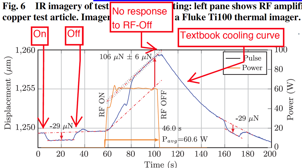 Да. Много. Но сфокусируемся на одном из них: по моему прочтению статьи, данные совершенно ясно показывают, что измеренное авторами смещение вызвано тепловым расширением, а не тягой, созданной полостью. Конечно, я сам не работал с аппаратом, и поэтому не могу утверждать это со стопроцентной уверенностью, но я убеждён, и считаю, что вы тоже должны быть.