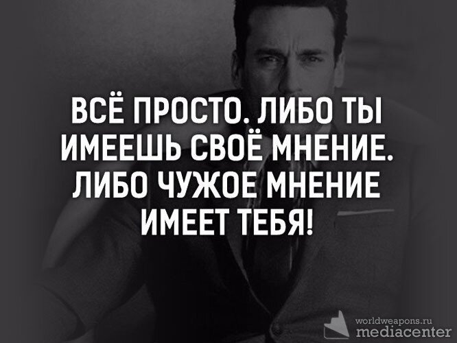 Прежде всего стоит смотреть вперед Не так важно, в каком случае вы полагаетесь на мнение других людей, будь то важное решение или мелочь. Стоит только допустить это, и со временем ситуация будет только ухудшаться, распространяясь как вирус. В результате такой человек не может даже пойти в магазин, не спросив совета, мнений или рекомендаций. Поэтому очень важно думать о том, что произойдет в будущем. Под впечатлением чужого мнения или даже совета вы легко можете совершить крайне опрометчивые действия, и осознание ошибки придет только со временем. Например, часто бывают ситуации, когда кто-то убеждает вас пойти на какие-то финансовые расходы, например, взять кредит на дорогую вещь, в которой нет необходимости. Для человека, который навязывает свое мнение, завтра этот совет ничего не будет значить, а вам придется заплатить значительную сумму. Самоуверенность Самый простой способ навязать свое мнение людям, это навязать его тем кто не уверен в себе. Это заставляет их полагаться на др