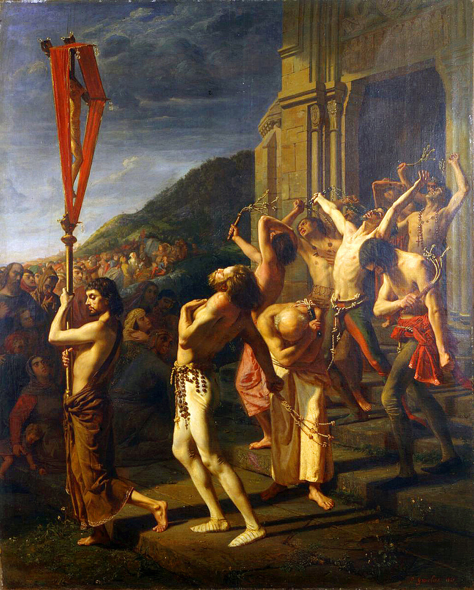 Когда чума отказывалась утихать, процессии переходили от церемоний раскаяния к самобичеванию. Самоистязатели верили, что они - искупители общества; они вновь проводили бичевание Христа на своих собственных телах, чтобы искупить человеческий грех.