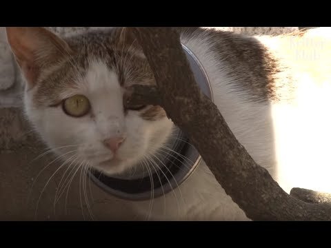 У мамы кошки на шее толстый железный обруч, но она никогда не сдаётся, заботясь о своих котятах Если попробовать снять обруч, сжимающий ее шею или приблизиться, она сразу убегает. Возможно, она голодает. Ей сложно глотать пищу и даже ходить тяжело. Оригинальное видео. Включите субтитры, чтобы понять о чем говорят спасатели! История Этот железный обруч с резиновой частью когда то был частью кухонной раковины. Возможно, она застряла во время поиска еды. Всего у этой кошки целых 6 котят. По ночам она бродит по улицам и мусоркам в поисках еды. Их дом находится внутри сухого куста на углу детской площадки. Но это кошачье убежище полно насекомых и мусора,а также опасных для здоровья животных вещей. Волонтеры решают спасти и осмотреть кошку. Поимка спасатели установили ловушку с едой. Так как вчера ночью мама-кошка не смогла поесть, она жадно накидывается на приманку. Ветеринар: Как она кормила грудью 6 котят и должно быть голодала. Вот почему она менее настороженно относится к окружающим.