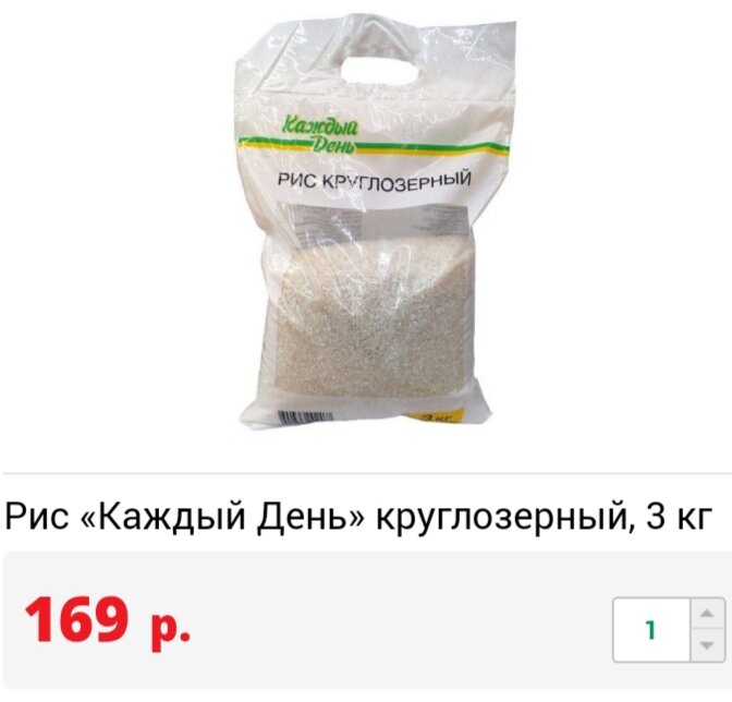 Упаковка из 3 кг обойдётся в 169 руб. Срок хранения продукта: 12 месяцев. Рис на вкус не плох, без постороннего запаха и привкуса. Из крупы придётся выбрать тёмные зерна (их не много) и тщательно промыть рис перед приготовлением блюда.