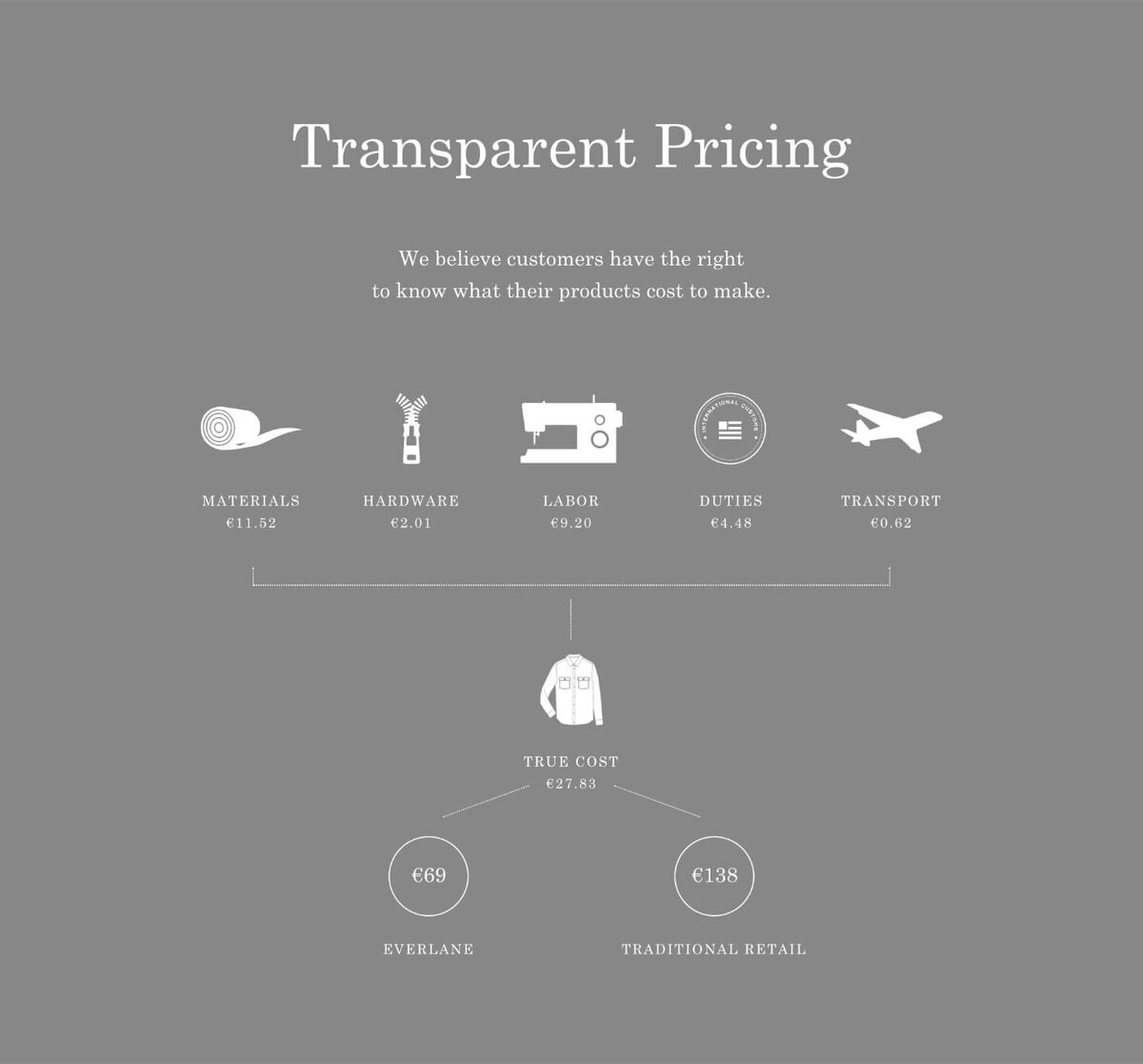 В недавнем опросе, проведенном HubSpot Research, 63% маркетологов ответили, что они хотят обновить веб-сайт в этом году. А вы? В 2020-м главной целью вашей веб-стратегии должна быть доступность. Доступность — это: Стройте свою веб-стратегию на потребностях аудитории. Если пользователям удобно, вам будет проще донести своё послание и достичь цели. Не прячьте информацию на сайте: не найдут у вас, найдут у конкурентов Удобство рулит. Сайты перестали быть красивыми онлайн-брошюрами. Теперь это инструмент для построения доверительных отношений клиентами. Помогите пользователям найти на сайте всё, что нужно. И перестаньте уже прятать цены! Сегодня это непростительная глупость. Сделайте так, чтобы клиент без труда нашёл цены и точно понял что нужно сделать для покупки. Смотрите какой раздел есть на каждой странице сайта Everlane: Everlane честно рассказала из чего складываются её цены. Это подкупает, не правда ли? Снимайте видео с обзорами своих продуктов. Используйте обзоры блогеров. Просите
