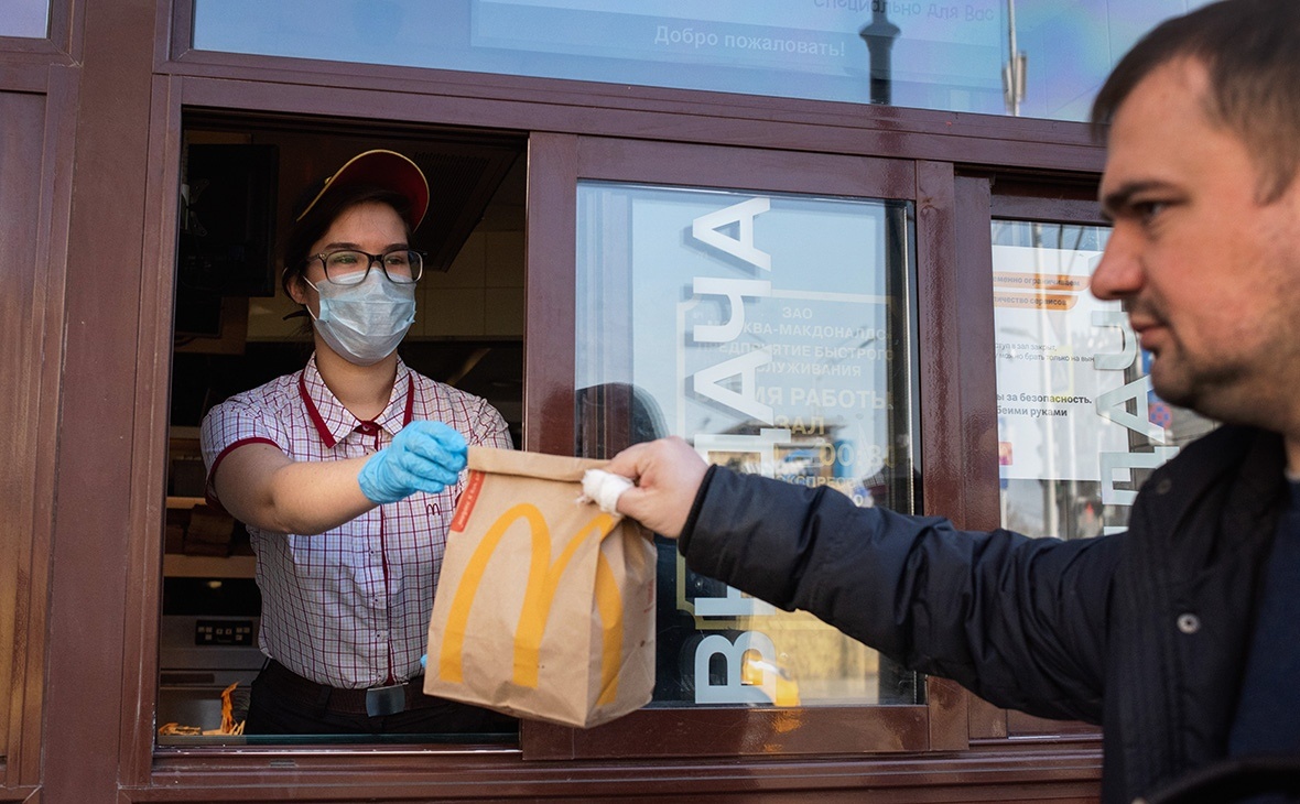 В «Макдоналдсе» отметили, что выдача обедов производится только экипажам машин скорой помощи. Пешие заказы невозможны по соображениям профилактики распространения коронавирусной инфекции.