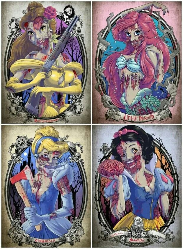 Эрика, на которой веселятся не только люди, но и морские жители. Но в первой версии, которую написал Ганс Христиан Андерсен, принц женится на совершенно другой принцессе, а убитой горем Русалочке предлагают нож, который она, чтобы спастись, должна вонзить в сердце принца. Вместо этого бедное дитя прыгает в море и умирает, превратившись в морскую пену. _____________________________ Золушка Есть гораздо более жестокая вариация от братьев Гримм: у них злобные сёстры режут собственные ступни по размеру хрустальных башмачков - в надежде обмануть принца. На хитрость не удаётся - на помощь принцу прилетают два голубя и выклёвывают глаза мошенниц. В конце концов, сёстры заканчивают свои дни слепыми нищенками, в то время как Золушка наслаждается роскошью и безмятежным счастьем в королевском замке. _____________________________ Спящая красавица Ори