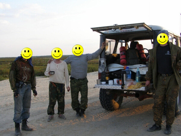 По обыкновению я встал раньше своих друзей. Костер, кофе, сигарета, шум мотора. Подъехал УАЗ. Красивый и оооочень подготовленный. Знакомимся со всеми. Кстати, подошел
