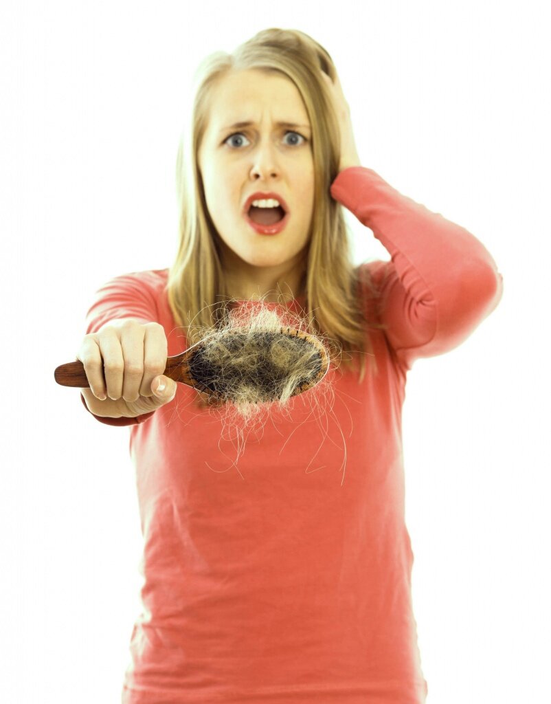 Выпадение волос является чрезмерным, если человек теряет ежедневно свыше 50—60 волос (естественный процесс — когда теряется 30-50 волос в день). Причины выпадения волос — нарушение обмена веществ (недостаток витамина В6, фолиевой кислоты); волнение, внезапный испуг, стресс; общее ослабление организма, вызываемое перенесенными заболеваниями (анемия, грипп, хронические простуды с высокой температурой); наследственный фактор. Проявления выпадения волос — равномерное поредение волос, частичное или полное выпадение волос в области темени и около лба у мужчин; полное облысение. ▪Касторовое масло весьма благотворно воздействует на корни волос. Способ применения прост: подогрейте небольшое количество масла на водяной бане и смажьте им кожу головы при помощи старой зубной щетки. Затем закутайте голову махровым полотенцем и оставьте как минимум на 5 часов. После этого голову надо тщательно промыть шампунем, содержащим натуральные экстракты трав. Повторяйте процедуру I раз в неделю в течение 1-2