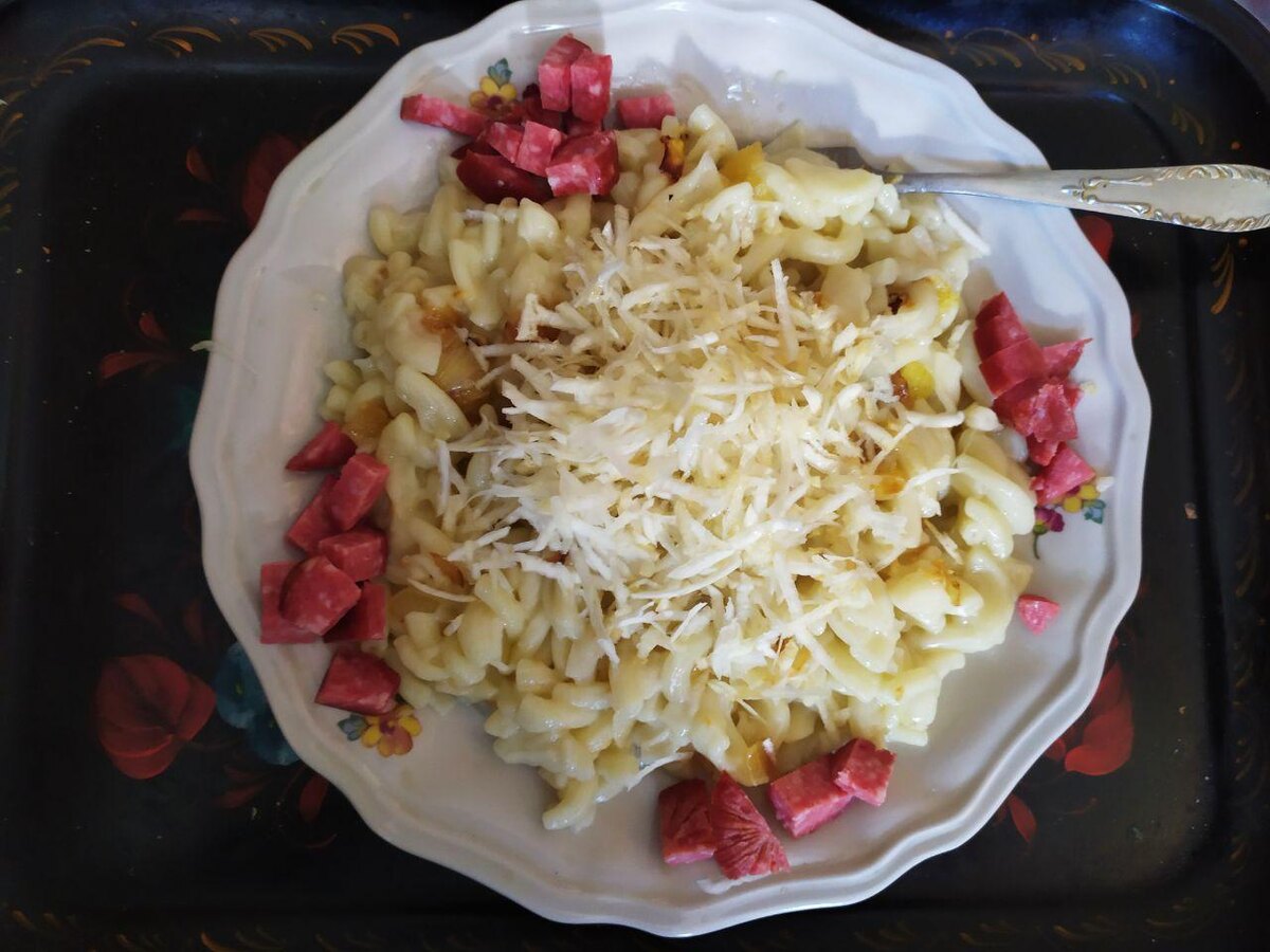 Фух, так набегалась сегодня что и забыла совсем про вас мои дорогие читатели, но сегодня будет плотненькое блюдо. Нам понадобятся такие ингредиенты: Записываем рецепт: Отвариваем макароны до готовности в подсоленной воде и отцедить, порезать лукавицу и обжарить её до золотистого текста в масле, натертый корень сельдерея, сюда же можно добавить натертую морковь и обжарить, с начало овощи жарить без крышки, а потом под конец накрыть крышкой и не много про тушить их под крышкой и чу чуть добавить воды и по вкусу специй: Орегано, базилик и поперчить и заправка готова! Заправку смешать с макаронами и блюдо готово! Подача: Берем наше блюдо и сверху присыпать сухим корнем сельдерея и подать с колбасой Приятного аппетита и хорошего вечера!