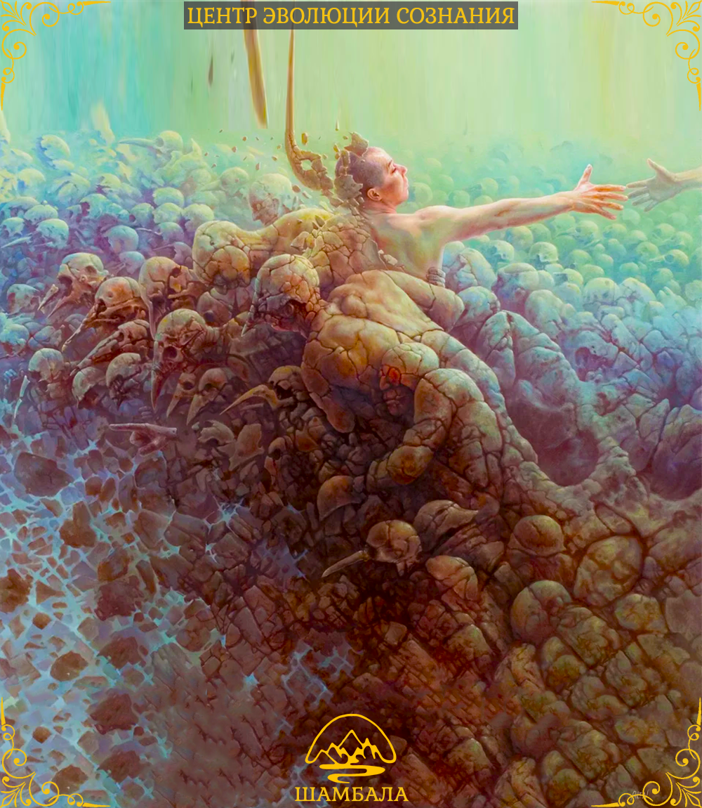 В тибетском буддизме (и вообще буддизме философском) есть определённый взгляд на то, что человек делает из жизни в жизнь, что является эволюционной целью каждого из нас – это собирание себя из осколков, на которые мы были разбиты тогда, когда стали отдельной личностью. Собирание себя, собирание своих частей – вот основная мысль, которая трудно уловима в череде сменяющихся событий, бытовых волнений, в потоке чувств и слов, бесконечных переживаний и стремлений. По сути это сводится к вопросу – кто есть я? Эта мысль, этот вопрос красной линией проходит не только через буддизм, а через подавляющее большинство духовно развивающих учений, таких как, например, адвайта, даосизм, ати-йога и так далее (я не говорю об учениях, которые служат только прикладным целям выживания и манипуляции другими). Во всех этих учениях эта мысль подаётся по-разному. Но в каждом развивающем учении внимание учащегося пытаются обратить на то, кто он сам, то есть, на вопрос «Кто есть я?». В некоторых учениях говорят, что нужно постепенно избавлять своё мышление от того, что есть не я, и так постепенно вы избавитесь от всего и нащупаете собственную пустотность, найдёте истинное я. В других учениях говорят о том, что настоящее я находится вне двойственности, которая присуща человеческому мышлению и интеллекту. Многие учения, на мой взгляд, преподают одну и ту же истину – Я находится вне каких-либо категорий или Я включает в себя всё, есть и такие учения. По сути, не включать в себя ничего равноценно тому, как включать в себя всё. Именно это имели ввиду даосы, когда говорили о Пустоте – в ней ничего нет конкретного, но из неё может родиться, что угодно. Но я бы хотел вам объяснить свой взгляд на это, во многом он основан на представлениях и эпитетах Тибета, возможно, этот взгляд вам покажется более красочным и прикладным. Возможно, он более подходит для людей с богатым воображением, а не аналитическим, я точно не знаю, предлагаю это оценить вам.