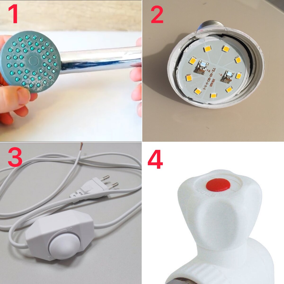 Всех приветствую уважаемые читатели! В этой статье хочу показать очень интересную самоделку из душевой лейки. Идея очень интересная и оригинальная. Если вы решили поменять старую лейку в душе, то не выбрасывайте старую лейку. Я покажу какая может получиться крутая самоделка. Нам понадобятся для работы 1. Старая лейка или ненужная лейка 2. Светодиод от лампы 3. Диммер на шнуре 4. Рукоятка регулятора шарового крана. Начинаем Разбираем лейку, откручиваем рассеиватель и снимаем резиновый уплотнитель, его можно снять с помощью острого предмета. Резинку убираем в сторону а сам рассеиватель почистим с помощью губки. Ещё одна важная вещь.. Забыл указать ещё одну важную вещь для нашей самоделки. Которая служит основанием для самоделки. Выглядит она вот так Можно использовать крышку из под любой банки, либо что то похожее на крышку, всё зависит от вашей фантазии. Лично я взял блюдце из под цветочного горшка, которое идеально подошло для моей самоделки. Делаем два отверстия как показано на фото