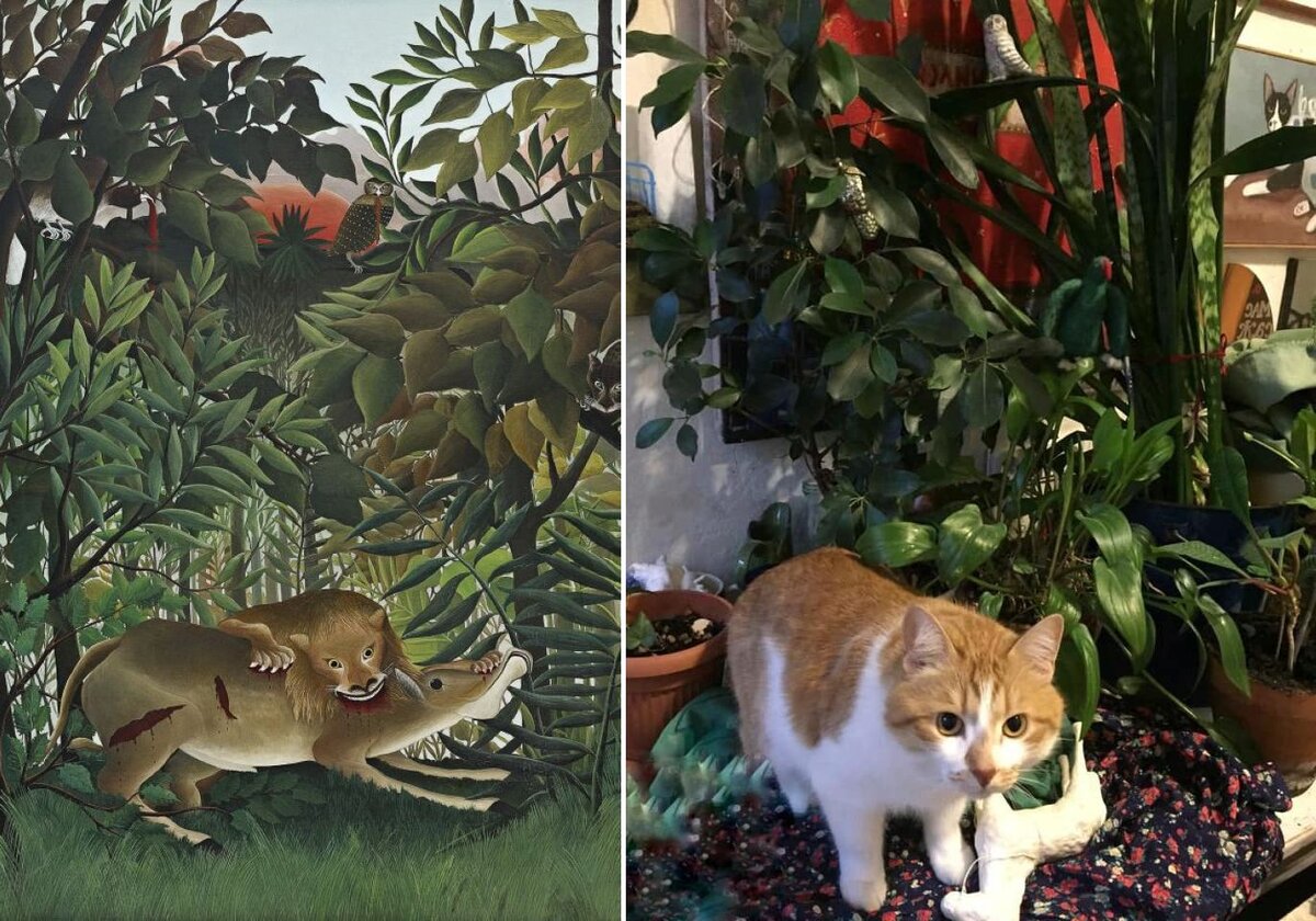 Прежде чем перейдём к котикам - несколько работ без них. Кто-то берёт смекалкой, кому-то просто повезло быть похожим на героев картин или скульптур, а