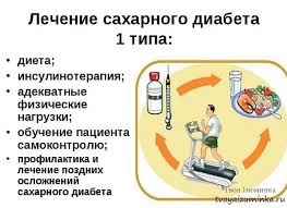 Сахарный диабет (СД) - хроническое заболевание, связанное с невозможностью организма вырабатывать инсулин или с нарушением усвоения глюкозы. Лечение сахарного диабета : При диабете 1 типа нужно получать инсулин каждый день. Если регулярно проверять уровень глюкозы в крови, питаться здоровой пищей и придерживаться здорового образа жизни, люди с этой формой заболевания могут вести здоровую жизнь. При диабете 2 типа людям необходимо увеличение физической активности, рациональное сбалансированное питание и контроль массы тела. Также, если будет необходимо, и приём лекарств. По любым вопросам консультируйтесь со специалистом Будьте ЗДОРОВЫ и никогда не болейте!