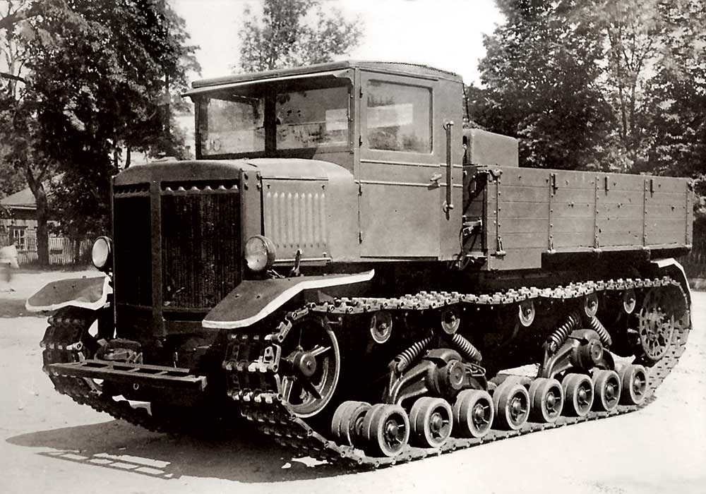 В 1930-е годы в СССР наблюдался резкий рост калибров и массы полевых ствольных артсистем: с 1933 начала производиться 203-мм 19-тонная гаубица Б-4, а в 1937 году и её "младшие сёстры" - 152-мм пушка Бр-2 и 280-мм мортира Бр-5. Все они сыграли значительную роль в Советско-Финской и Великой Отечественной войнах. Их запредельная масса, а также весьма своеобразная конструкция лафета на гусеничном ходу заставили поломать конструкторам голову над обеспечением их механической тягой. Первым специализированным артиллерийским тягачом, способным таскать этот триплекс по пересечённой местности, стал "Коминтерн" - детище Харьковского Паровозостроительного завода, в конструкции которого использовались наработки по опытному танку Т-24, в частности ходовая часть. Весьма удачная машина обладала высочайшими тяговыми и мощностными характеристиками для своего времени. Однако буксировать 203-мм гаубицу Б-4 целиком не могла, для этого орудие приходилось разбирать надвое, устанавливая ствол на отдельный лафе