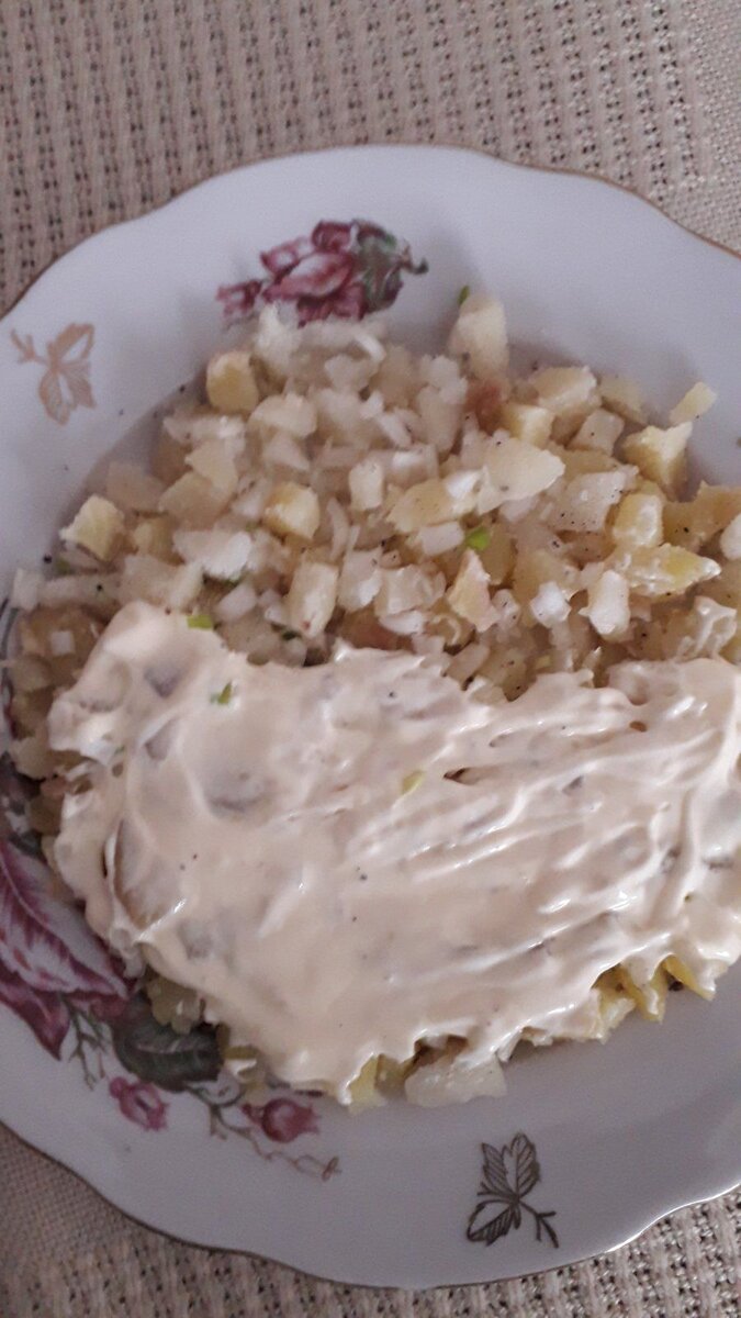 Состав: картофель 250 гр среднего размера, свекла 250 гр небольшая, морковь 2 шт, 1 луковица, яйцо куриное 2 шт, твердый сыр 30-40 гр, чеснок 1-2 дольки, майонез 300 гр, соль и черный перец. Можно использовать чесночный майонез. Приготовление: Все овощи и яйца отварить. Затем картофель, лук и яйца мелко нарезать. Свеклу, морковку, сыр и чеснок натереть на терке. Укладываем в салатник слоями: 1) на картофель и лук посыпать соль и перец. Промазать сверху майонезом. 2) свекла с чесноком. Промазать майонезом. 3) морковь. Промазать майонезом. 4) тертый сыр. Насыпать сверху мелко нарезанные яйца. Готовый салат поставить на холод для пропитки. Ставьте лайки. Вопросы и предложения пишите в комментарии.