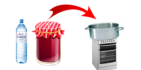 В кастрюлю налил 1,5 литра воды добавил варенье 1,5кг и довел до кипения.