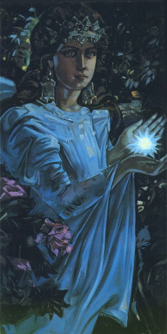 · По третьей ― Марена, Леля и Жива были созданы из искр, образовавшихся, когда Сварог ударил своим молотом по священному камню Алатырь.