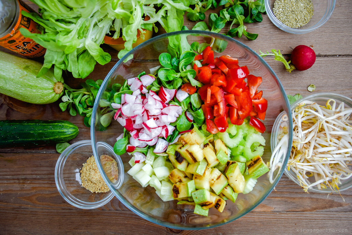 Сельдерей – продукт с отрицательной калорийностью. На его переработку и усвоение организм тратит больше калорий, чем получает в результате его потребления, ведь в сельдерее содержится всего 18 килокалорий. Так что, салат из сельдерея для похудения – отличное средство для всех людей, желающих сбросить лишние килограммы. Тем более что он необыкновенно полезен для организма. Полезные свойства сельдерея Этот пряный овощ обогащает организм целым рядом витаминов и микроэлементов. Особенно много в нем витамина C и таких микроэлементов, как кальций, калий и цинк. Содержащиеся в сельдерее полезные вещества активизируют метаболизм и положительно влияют на жизненно важные процессы в организме. Помимо этого он подавляет чувство голода и повышенного аппетита. Благодаря всем этим качества, сельдерей так часто применяется во всевозможных диетах. Любая часть растения (листья, стебли, корень) пригодны для употребления. В кулинарии их используют как пряную приправу к различным блюдам, готовят из них с