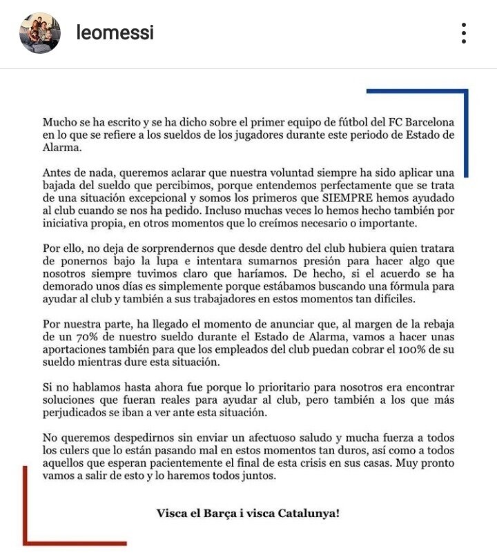 Многое было написано и сказано о Барселоне в отношении вопроса о зарплатах игроков в этот тревожный период.