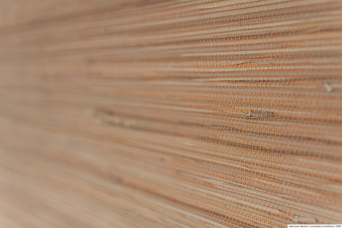 В наследство от предыдущих хозяев нам достались соломенные обои.