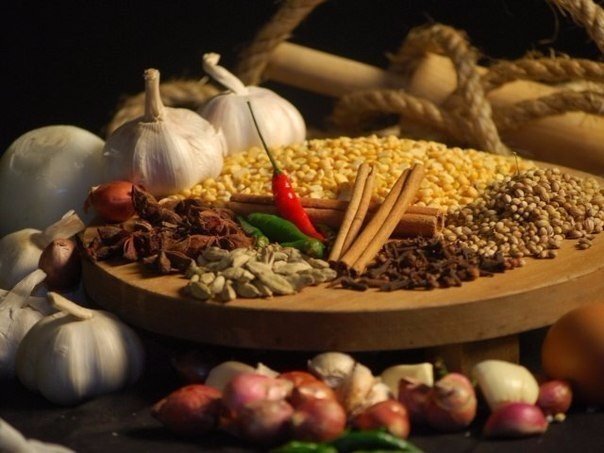 ЛЕКАРСТВА НА КУХНЕ НЕ СПЕШИТЕ В АПТЕКУ, ЗАГЛЯНИТЕ НА КУХНЮ! * Высокая температура. 0,5 л воды с молоком 1:1, сахаром или медом по вкусу и с 1 ч. ложкой молотого кардамона снижают температуру. * "Тяжесть" в желудке. Обмакнуть ломтик имбиря в мед и пожевать. * Проблемы с кишечником (диарея). Разведите 0,5 стакана йогурта 0,5 стаканом воды, добавьте щепотку имбиря и мускатного ореха. * Метеоризм. Заварите 1 ч. ложку равных частей молотого кардамона, фенхеля и имбиря в 1 стакане воды. Выпить, когда немного остынет. * Головная боль. - Заварить 1 ч. ложку равных частей кориандра и кумина (зиры) в 1стакане горячей воды. Пить постепенно, глотками. - Выпейте стакан теплого молока с 2 ч. ложками льняного семени. * Жирная кожа, угри, прыщи. 1 ст. ложку сока алое смешать с 1/4 ч. ложки куркумы. Принимать внутрь 2 раза в день, пока кожа не станет чистой. * Неприятный запах изо рта. Пожуйте семена фенхеля или заварите в стакане кипятка 1 ч. ложку смеси молотого кардамона, молотой корицы и м