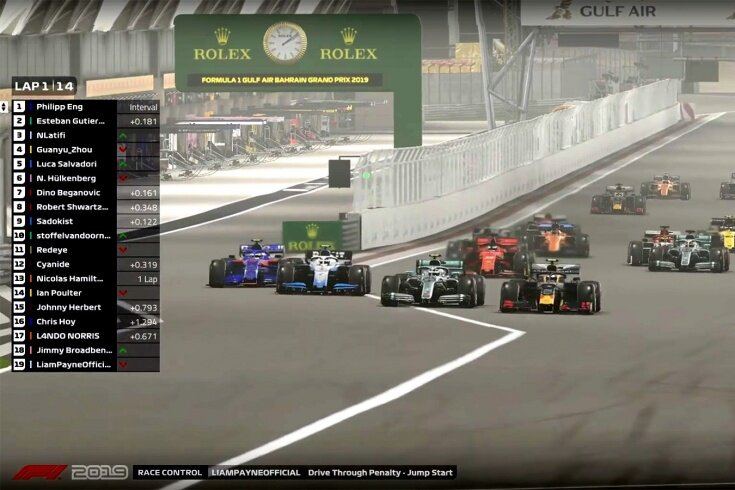 Что же, пока вирус ходит по миру, организаторы Формулы-1 нашли решение, устроив виртуальный чемпионат. Первый ГП прошел на трассе Сахир, что в Бахрейне. Квалификация и две гонки по 14 кругов. Изначально смутило то, что состав не соответствовал пилотам нынешнего сезона, он вообще не соответствовал. Да, там были действующие пилоты Формулы-1, да, там были звезды Ф1, прошлых лет. Но кто все остальные? Представляю вам состав пилотов: Mercedes AMG Petronas Эстебан Гутьеррес Бывший пилот Формулы-1 (59ГП), ныне тест-пилот Мерседеса Стоффель Вандорн Бывший пилот Формулы-1 (42ГП), сейчас тест-пилот Мерседеса Scuderia Ferrari Mission Winnow Роберт Шварцман Чемпион Формулы-3, пилот Академии Феррари и действующий пилот Формулы-2 Дино Беганович Пилот Академии Феррари Aston Martin Red Bull Racing Филипп Энг Действующий пилот DTM Кристофер Хой Олимпийский чемпион, чемпион мира и чемпион всех чемпионов по трековым велогонкам McLaren F1 Team Николас Хэмилтон Пилот британского Renault Clio Cup и