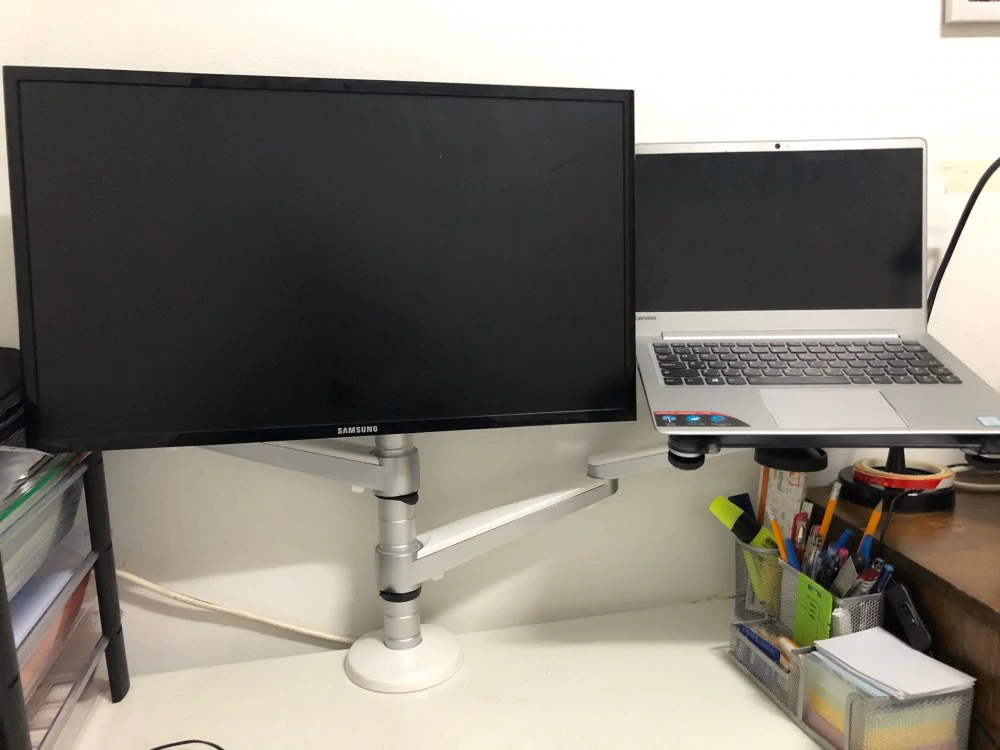 Самоизоляция в полном разгаре. Многие вынуждены заниматься работой дома. Моя подборка поможет вам организовать удобное рабочее место в вашей квартире. Чтобы оставаться высокоэффективном в сложившихся обстоятельствах. КРОНШТЕЙН ДЛЯ НОУТБУКА С МОНИТОРОМ Если ваше основное устройство для работы это ноутбук. То очень рекомендую попробовать вам такое решение. Вряд ли люди которые каждый день берут с собой ноутбук являются обладателями устройств с широкой диагональю. Данное решение имеет две лапки на которых размещены подвес для монитора (до 27 дюймов диагонали) и кронштейн для ноутбука до 15,6 дюймов. Каждая лапка может выдержать до 7-ми килограмм нагрузки. Эта вещь позволит не только расширить дисплей вашего ноутбука но и позволит вам работать сразу на двух мониторах, что в современных реалиях практически необходимо. Посмотреть подробнее можно здесь КРОНШТЕЙН ДЛЯ ДВУХ МОНИТОРОВ Если Вы обладатель полноценного ПК и прошлое устройство Вам не подходит, то это устройство для Вас. Кронштейн дл